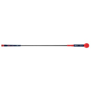 The SKLZ | Barstool Golf Gold Flex Swing Trainer 48" is a training aid designed to enhance swing tempo, muscle memory, and power with its exaggerated flex shaft and weighted head.