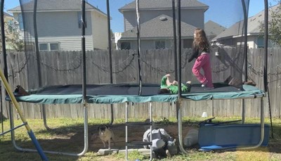 Purchased this trampoline sometime last year at price point 449 before discounts. The poles are much thicker/wider than your traditional round trampoline. We opted for a rectangular shape because of our small yard size. The spring cover has some wear from the sun and elements, a small area where thread and started coming apart where our kids step when getting on/off the trampoline. We would definitely recommend this trampoline over a circular size. Worth every penny!
