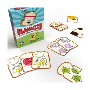 Flip and stack this clever loaf of cards to build slamwiches and double-deckers. Tomato, onion, tomato... slap! Get there first and win the pile. But watch out—you'll have to catch the thief and stop the muncher from stealing the stack of cards. When you're out of cards you're out of the game. The player who collects all of the cards wins. Parental alert: a sharp eye and fast hand will prevail. Play all out, but the kids will beat you every time! Slamwich teaches reading readiness skills, like visual discrimination and sequencing. While kids are flipping and stacking cards, they're actually learning how to recognize a series, make combinations, and anticipate what might happen.