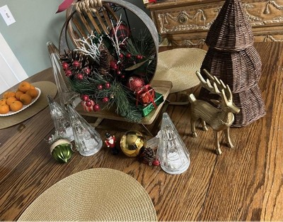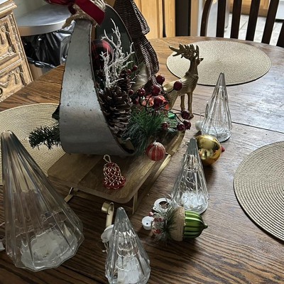 I bought two of these sleighs! I used one as a charcuterie board for the holidays get together and one to set up on the dining room table for display with some new glass Christmas trees, that light up really nice and gold deer as well as the wicker Xmas tree that were all part of pthreshold studio McGee line this Christmas. Happy with the purchases.