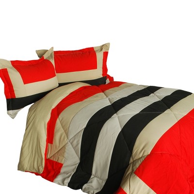 Slickblue Comforter & Sham Set, Soft Microfiber, Reversible Patchwork Quilt, Down Alternative Fill, Twin, Red/Khaki