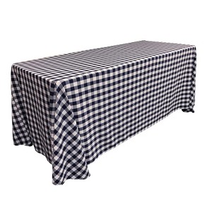 Slickblue Checkered Gingham Tablecloth, Stain Resistant, Polyester Linen, White and Navy, 90"x156"