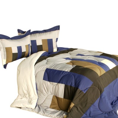 Slickblue Twin Comforter Set, Vermicelli Quilting, Patchwork Bedding, Handmade Look, Multiple Design Options