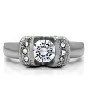 Slickblue Women’s CZ Engagement Ring, Silver, 6mm Round Center Stone, Pave Accents, Polished Steel, Size 5-10 - 1 of 4