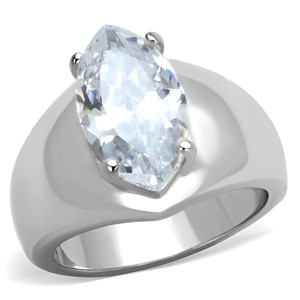This solitaire-style stainless steel ring features a polished silver-tone finish and a striking marquise-cut CZ stone in clear. Measuring 15 x 8 mm, the centerpiece delivers a bold and refined profile, perfect for a standout accessory. With an approximate weight of 8.40 grams and size ranging from 5 to 10, this ring combines comfort with dramatic style. Its smooth band and classic shape make it suitable for layering or wearing as a signature piece.
