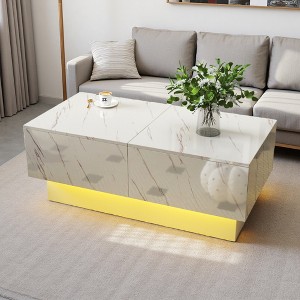 (Hidden Storage Compartments): Conceals spacious compartments beneath the tabletop, perfect for storing books, magazines, remotes, and other everyday items.