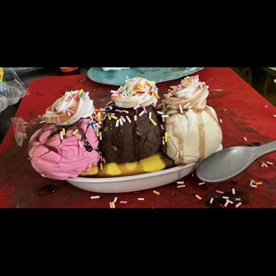 Making all of the food products was fun but there was a ton of leftover stuff like the syrup, butter, tomatoes, and the random piece of lettuce. It feels more like clay than slime, the instructions were a little vague, and after you squish the slime it's just not good anymore. The icing also didn't work that well. Overall it was fun to create the food but afterwards you can't really play with it. It's just a one time use. Mat is provided for easy clean up. It also has a recipe book you can follow to make different recipes like 3 layered cake, sandwich and banana split