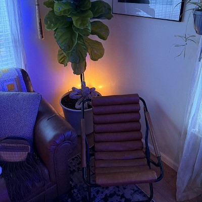 This chair is surprisingly comfortable and sturdy. I love that it folds up so it's easy to put out of the way if you need the space. If you are not tall I would recommend an ottoman to put your feet up on. It is pretty low to the ground compared to other furniture that might be in the living room, just something to be aware of. It's also a lighter brown than it looks in the photo online.