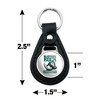 - QUALITY MATERIAL: Our durable round keychain is crafted from leather with a glossy resin-topped emblem featured design shown on one side. Approximately 1.5" (3.8cm) x 2.5" (6.4cm) in overall size, emblem is 1" (2.5cm)..