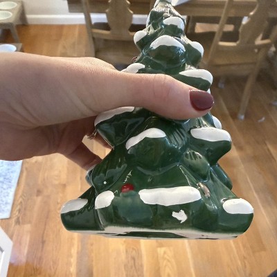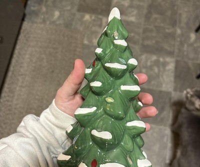 Bring snowy, festive elegance to your holiday decor with this Ceramic Tree from Threshold™. This Christmas tree is designed in an 11.81-inch cone silhouette in bright green with sculptural accents, highlighted by white splashes for a snow-clad look. Display it on the mantel, console table, or as a centerpiece on your dining table to instantly spruce up your space with wintry charm.