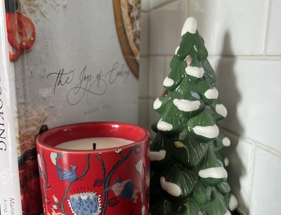 Great quality. And so cute. Very nostalgic looking. For the space I wanted it, I would’ve maybe gotten the medium but what’s bought is bought;). Beside a 3inch tall candle for size comparison. The cookbook beside it is 10” tall. Again for size.