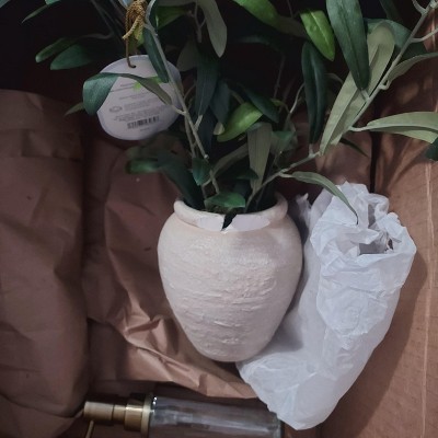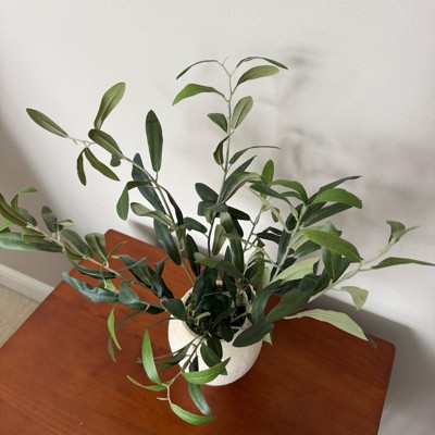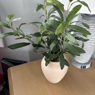 [This review was collected as part of a promotion.] This is a small and versatile small olive leaf arrangement from Threshold designed with Studio McGee. I love that they made a small arrangement because you typically see the large olive trees available so this is nice. This would be great in a bathroom or living room to brighten up the space. The plant looks realistic.