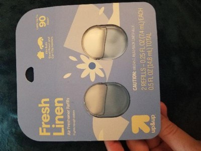 Revitalize the feel of your car or home with these 2-Count Fresh Linen Air Freshener Refills from up&up™. These two air freshener refills feature a fresh linen scent to fight tough odors, lasting up to 90 days in total. They fit the brand's small room and car clip holders so you can keep using them to freshen up your space.