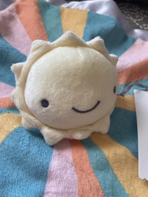 I ordered two different “lovey” toys for a friend’s upcoming baby shower. I wanted gender neutral and I wanted unique. I though this one would fit the bill. However, despite careful removal of the tag, it left holes in the satin like fabric on the back. Although the colors and design are gender neutral, the satin like color was dull and I felt the center piece was too large for a baby to grab on to. The fabric is soft and the sun face is adorable, but overall I wasn’t pleased with this particular choice.