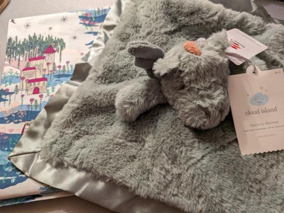 Add some whimsical wonder to your little one's nursery with this Small Security Blanket Crib Toy from cloud island™. Crafted from soft, fuzzy fabric, this green security blanket is fashioned in a handkerchief style with matching satin trim. It showcases an adorable dragon soft toy at the top with outstretched arms and wings to capture your little one's attention right away. Perfectly sized for stroller rides and car trips, this blanket makes a cozy companion for your child during playtime and beyond.