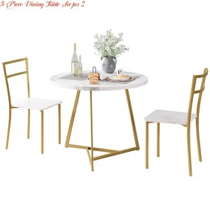 Small Space Dining Table Set for 2,Kitchen Table w/ 2 Upholstered Chairs, Round Kitchen Table Set