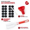 - Includes Accessories!: We have included a funnel for a smooth pour, bottle brush to help clean the little jar, chalkboard sticker labels, and a white chalkboard marker, so you can easily label your container in a cute way.