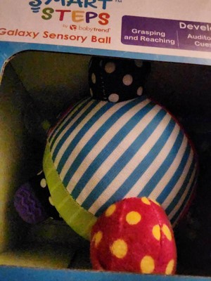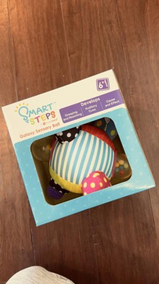 Love the colors and different textures on this sensory ball. It's like a combination of several different baby toys that are out there. It's a little big for a smaller baby to hold, but once they are bigger and can really roll and throw it, it's a very fun toy.