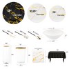 - Luxury Touches Included – Features clear with gold tumblers, champagne flutes, and gold-trim napkins.