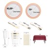 Celebrate in style with this service for 50 red and gold dinnerware set, designed to impress at weddings, holiday gatherings, and special events. Featuring white plates accented with red and gold, elegant gold flatware, burgundy tablecloths, and white napkins with gold details, this set creates a sophisticated table setting. Clear tumblers and champagne flutes add sparkle while offering convenience. Crafted from BPA-free, durable plastic, this disposable set ensures both elegance and effortless cleanup, making it perfect for large celebrations.