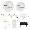 Host your event in timeless elegance with this service for 20 disposable dinnerware set, featuring white with gold dinner and salad plates, matching dessert bowls, and luxurious gold flatware. Coordinated with black tablecloths, crisp white buffet napkins, and clear tumblers with gold trim, this set creates a polished and upscale tablescape. Perfect for weddings, birthdays, anniversaries, and formal gatherings, it combines premium style with the convenience of BPA-free disposable plastic, ensuring effortless cleanup without sacrificing sophistication.