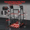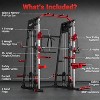Achieve your fitness goals with our All-in-One Smith Machine, expertly designed to engage multiple muscle groups and support a diverse array of exercises. This multifunctional powerhouse combines a Smith machine, squat rack, cable crossover, LAT pulldown, and pull-up station. Now you can seamlessly perform barbell bench presses, rows, squats, deadlifts, bicep curls, tricep pushdowns, and hanging leg raises, making it suitable for all fitness levels. Engineered for High-Strength Durability, our Smith Machine features dual solid steel bars with hard chrome plating for outstanding wear resistance. The linear bearing sliding sleeves facilitate smooth movements, enhancing your workout comfort. Enjoy our Upgraded Cable Crossover System that includes commercial-grade 7-strand cables, which are more robust than standard cables. Wrapped in durable PU material, they provide superior wear resistance, while upgraded PU pulleys withstand high-intensity workouts. Your safety is paramount, featuring adjustable limiters on the Smith bars with 10 positioning slots and an outer safety arm that converts into a leg-down holder for added versatility. Constructed from light commercial-grade 2"x2" steel, this machine supports up to 2,200 lbs, delivering exceptional stability for all users. Note: The Smith machine is shipped in four packages that may arrive separately. Our professional service team is on standby to assist you during assembly. Elevate your home gym with this reliable and versatile Smith Machine!