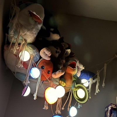 The adhesive is not very durable nor strong enough to hold the planets. Sadly, they were on the wall for less than an hour. We had to compromise and hang them on the stuffed animal net instead. Other than the adhesive and being out of order, we enjoyed turning them on.