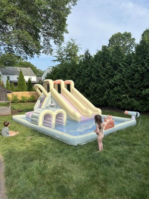 Open your back door to summer magic with your very own water bounce house. The Smol Splash is the perfect way to cool down on warm days as you jump, slide, and play for hours on the Smol Splash. This inflatable water playset features two tunnels, a climbing wall, double slides, a basketball hoop, and a water gun–just for fun. Its modern, sleek design and beautiful pastel colors are sure to elevate any play date or backyard party.