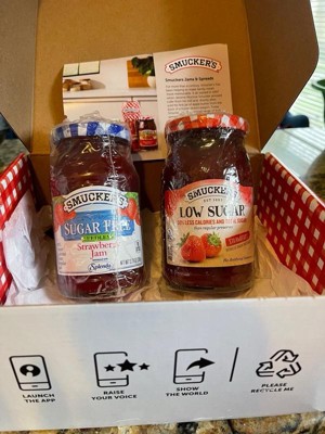 Smucker’s Low Sugar Reduced Sugar Strawberry Preserves has a berry flavor that shines. Enjoy these preserves with no artificial sweeteners or flavors, or high fructose corn syrup. Plus, it has real fruit and half the calories (50% less total calories than regular preserves. Calorie content has been lowered from 50 to 25 per serving) and 50% less total sugar (50% less total sugar than regular preserves. Total sugar content has been lowered from 12g to 5g per serving) than regular preserves. Pair this reduced sugar spread with Smucker’s peanut butter to create a classic PB and J sandwich or blend it into your morning smoothie or a homemade vinaigrette. You'll want to make sure your pantry is always stocked with Smucker’s Low Sugar Strawberry Reduced Sugar Preserves.