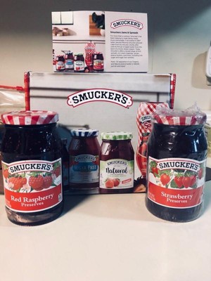 Smucker’s Red Raspberry Preserves have a rich, velvety texture and deep berry flavor that the whole family will love. The delightful raspberry flavor keeps you coming back for more. Kids' lunches will always be easy and convenient with this spoonable fruit spread. This delicious spread is made with high-quality fruits. It's the perfect complement to your next cheese platter, and it makes a delicious base for a balsamic glaze. Every meal will be a masterpiece when you use Smucker’s Red Raspberry Preserves.