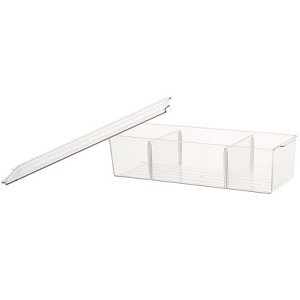 I bought 2 of the large to use in my craft room for the grandkids craft supplies. I was impressed with the quality of the plastic, the way they stack on each other, and the way the lid sits inside the container. Ended up using one for cut veggies in the frig. May have to get a few more