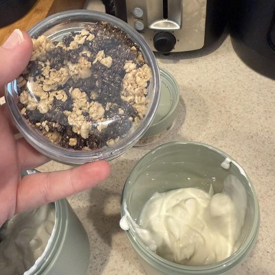 Great little snack cup, I love taking it to work and knowing I have the separation so the toppings don’t get soggy. Easy to clean and assemble
