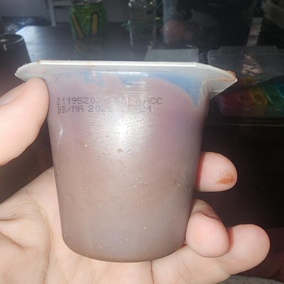 Hi. Thanks for bringing this to our attention. We are sorry you had this experience with our Snack Pack Pudding Chocolate Product. We will pass this information on to our team. Thanks again for reaching out to us.