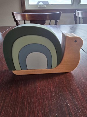 The snail stacker is perfect for little hands. It helps with hand eye coordination and keeps your child engaged. Because of the design even a child that is prone to put toys in their mouth will be safe. The silicone exterior allows for easy clean up.