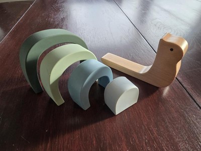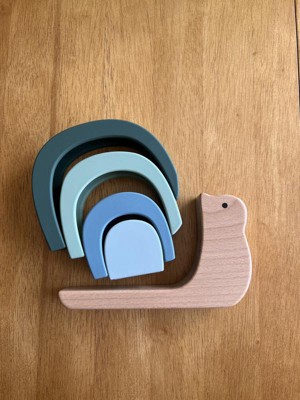 This stacking toy is adorable, very aesthetic, and safe for babies 12+ months or older. It is perfect for my little one to chew on and grasp with her hands, due to it being made out of food-grade silicone. It follows a simple stacking pattern, with 5 pieces total for the little hands to put together. The snail body is made out of a really cute wood design, but is soft wood and not too heavy. The set is BPA, PVC, and phthalate free which is important for me to have a safe and functional toy for my child. I would highly recommend this product and would love to have more products from the Cloud Island toy line.