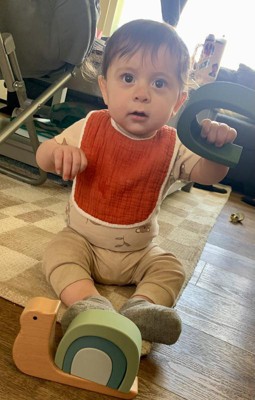 Add some educational fun to your little one's playtime with this Silicone Snail Stacker Toy from cloud island™. The toy features a wooden snail with silicone stackers to stimulate your little one's senses and imagination. This snail stacker toy makes a great gift for baby showers, first birthday parties or any other occasion.