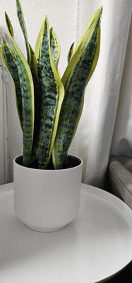 This artificial snake plant looks so real! I love the pot it sits in. It's ceramic and looks great on my side table. This really looks real and adds some green to my decor. It gives height and has a little weight so that it won't be knocked over.