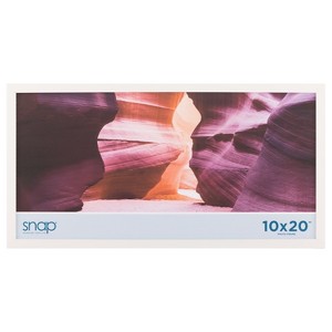 Really nice, smooth (white) wooden frame with a glass covering for the actual image in the center. I got the 10x20” size, and it fits perfectly on my wall!