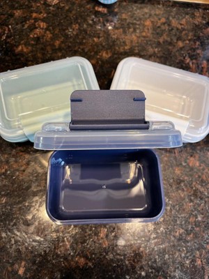 Great reusable food containers- one-cup capacity with attached snap-on lid. Lid does come off if needed for cleaning, but is conveniently attached as to not lose the lid! The set comes in fun three different colors, and stacks easily as well. The seal is tight, and leak-proof as well.
