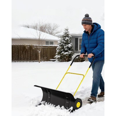 Make winter cleanup quick and comfortable with this heavy-duty snow pusher, featuring a wide 36-inch blade and dual-wheel design for effortless clearing. The T-shaped handle adjusts in height, allowing users of any stature to maintain proper posture and reduce back strain while tackling driveways, sidewalks, and porches. Built with a reinforced steel frame and high-density polyethylene blade, this shovel stands up to packed, heavy snow season after season. Its maneuverable wheels glide around tight spaces, and the compact design ensures easy off-season storage.