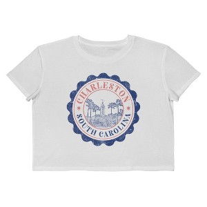 Social Collective Women's Charleston  Americana 4Th Of July Short Sleeve Graphic Cotton Cropped Loose T-shirt - Bright White L - 1 of 4