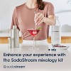 [This review was collected as part of a promotion.] The SodaStream Mixology Kit is a 6-piece set designed to help you create delicious cocktails and mocktails at home using your SodaStream sparkling water maker. The kit includes: * Cocktail Shaker: A classic Boston shaker with a built-in strainer to mix and strain your drinks. * Double-Sided Jigger: Measures both 1 oz and 1.5 oz of liquid for precise mixing. * Cocktail Stirrer: A long, thin spoon for stirring drinks and garnishing. * Stainless Steel Ice Spheres: Two large ice spheres that chill drinks without diluting them. * Muddler: Used to crush fruits, herbs, and spices to release their flavors. Additional features: * Cocktail Recipe Book: Includes a variety of recipes for both alcoholic and non-alcoholic drinks. * Dishwasher Safe: All pieces are dishwasher safe for easy cleaning. How to use the SodaStream Mixology Kit: * Make sparkling water: Use your SodaStream sparkling water maker to carbonate water. * Choose a recipe: Select a cocktail or mocktail recipe from the included book or create your own. * Gather ingredients: Collect the necessary ingredients, including any spirits, mixers, fruits, herbs, or spices. * Mix your drink: Use the shaker, jigger, and other tools to mix your drink according to the recipe. * Serve and enjoy: Pour your drink into a glass, add ice spheres if desired, and garnish with a fruit or herb. Tips: * Experiment with flavors: Try different combinations of fruits, herbs, and spices to create unique and delicious drinks. * Use fresh ingredients: Fresh fruits, herbs, and spices will add the most flavor to your drinks. * Chill your ingredients: Chill your glasses, spirits, and mixers before making your drinks to keep them cold. * Have fun! The SodaStream Mixology Kit is a great way to unleash your creativity and enjoy delicious drinks at home.