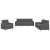 - This lovely 3 piece sofa set, with its sleek dark grey fabric, is a perfect mix of style and practicality, making it a great addition to any space. With its modern design and breathable materials, this set packs in a 3-seater sofa, a 2-seater sofa, and a comfy armchair, giving enough spots for up to seven people, great for hanging out, relaxing, or casual reading. Durable Material: Made from 100% polyester, this sofa set is tough and breathable, offering comfort even after long hours of sitting.Comfortable Design: The thick cushions and soft armrests give superb support, making it a great piece for chilling out.Stylish Look: The trendy dark grey hue adds a modern vibe and works well with a range of home styles.Low Maintenance: Easy cleaning since the cushion covers can be wiped down or vacuumed to keep them looking fresh.Versatile Use: Ideal for living rooms and office spaces, this sofa set nicely enhances any area while providing a comfy spot for both work and relaxation. Color: CharcoalShape: RectangularMaterial: Fabric PolyesterFinish: MatteIndoor/Outdoor: Indoor OnlyCover Included: NoRoom: Living RoomMaximum Number of People: 7Dimensions: 30.3 x 30.7 x 31.5 in. (W x L x H)Leg Height: 22.2 in.Weight: 126.32 lbsSeat Depth: 19.7 in.Seating Capacity: 6Swings: NoDelivery Contains: 1 x Sofa ChairAssembly Required: YesRecommended Number of People for Assembly: 2