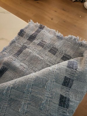 This Hearth and Hand throw is light weight and makes a great decor piece. Its not super soft or cozy. I would use it hanging over a cluch or blanket rack. I like the blue tones and the texture is unique.