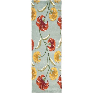 Introducing our luxurious Hand Tufted Wool and Viscose Runner Rug, a perfect blend of comfort and elegance, designed exclusively for sophisticated interiors. This exquisite 2'-6" X 8' runner creates a captivating focal point in any hallway or long space, enhancing your decor with its vivid hues and timeless charm. The beautiful runner features a charming pattern of stylized floral motifs in shades of blue, interspersed with vibrant multi-colored accents that bring life to the design. Crafted with meticulous attention to detail in India, each piece promises not only impeccable style but also exceptional durability. The use of wool ensures a soft, plush texture underfoot, while the hint of viscose adds a subtle sheen that captures and reflects light, providing an ever-changing appearance throughout the day. Whether placed in a residential space or a high-end office, this runner rug is sure to impress with its artisanal quality and unique design. Enhance your environment with this stunning addition that speaks volumes of class and sophistication.