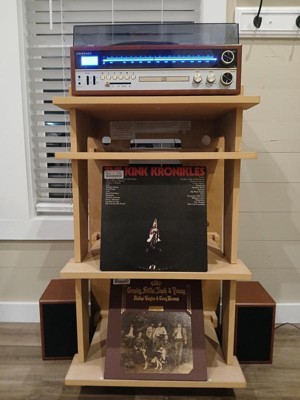 This table is extremely unstable, especially with a heavy record player on top. Just walking around the table on hardwood floors causes the record player to wiggle at the top, which is obviously a problem. The reason it's unstable is because all the pieces assemble by slotting into oversized grooves. I naively tried to shim the gaps in all the grooves which took a couple of hours and still didn't work. On top of that, the veneer finish scratches extremely easily, and it comes with a giant "made in China" that faces the front of the unit (on the inside above the 2nd highest shelf). This sticker is IMPOSSBIBLE to remove and I had to tape over it with electrical tape so it's not visible. This thing is just not thoughtfully designed for the application, despite the cool feature of being able to display your "now playing" record (an idea which was ripped off of a kickstarter product, by the way). I'm still using it since I paid so much and don't want to dissemble it, but it is a real bummer of a product at this price point.
