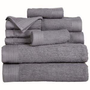 Pure 100% cotton terry is woven into a plush ribbed bath towel for a luxurious, spa-worthy towel that has exceptional ribbed pile that is subtly soft, yet invigorating against the skin. This 10 piece Ribbed Towel set will add contemporary style to any bathroom decor with its elegant design. Fingertip towels are included to enhance your powder room decor.