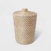 Just updated my vanity in our powder room. I have a coastal theme. This matched beautifully. What drew me to this particular rattan was that it came with a lid and a liner inside the rattan basket. Helps keep pets out and no one wants to see the trash.. Bought a woven basket threshold years ago loved it but got damaged with odor so I love that this comes with a hard plastic liner. Style is versatile. I can see changing my decor and this trash still working with other styles. I did see concerns from other reviewers. I ordered mine to ship home. It arrived great condition and lid for well. Maybe something to pick out in store and compare with the others available instead of curbside check out. The associates are just fulfilling orders and grabbing. Many times I’ve gotten things not so great curbside.