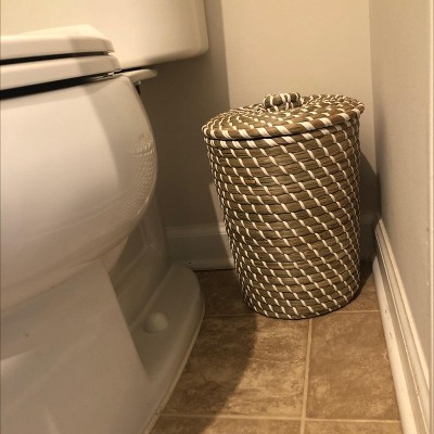 Just updated my vanity in our powder room. I have a coastal theme. This matched beautifully. What drew me to this particular rattan was that it came with a lid and a liner inside the rattan basket. Helps keep pets out and no one wants to see the trash.. Bought a woven basket threshold years ago loved it but got damaged with odor so I love that this comes with a hard plastic liner. Style is versatile. I can see changing my decor and this trash still working with other styles. I did see concerns from other reviewers. I ordered mine to ship home. It arrived great condition and lid for well. Maybe something to pick out in store and compare with the others available instead of curbside check out. The associates are just fulfilling orders and grabbing. Many times I’ve gotten things not so great curbside.