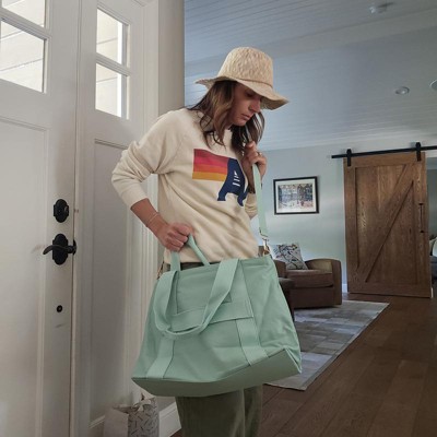 Solid Canvas School Tote Bag - Open Story™ Sage: RFID Blocking Laptop Compartment